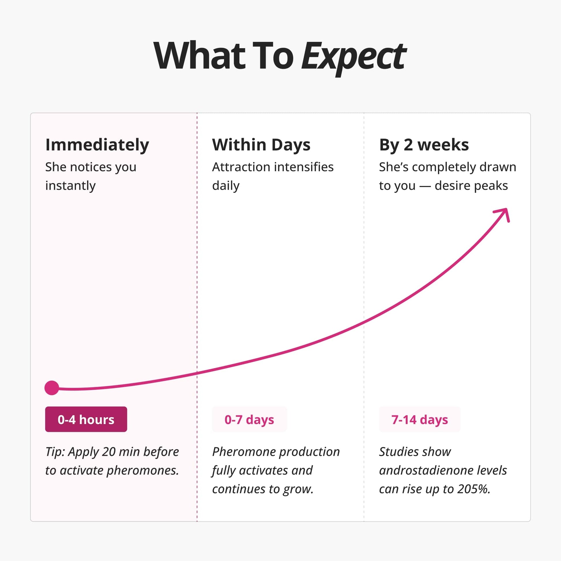 Studies show: Within two weeks, androstadienone levels can increase by up to 205%.